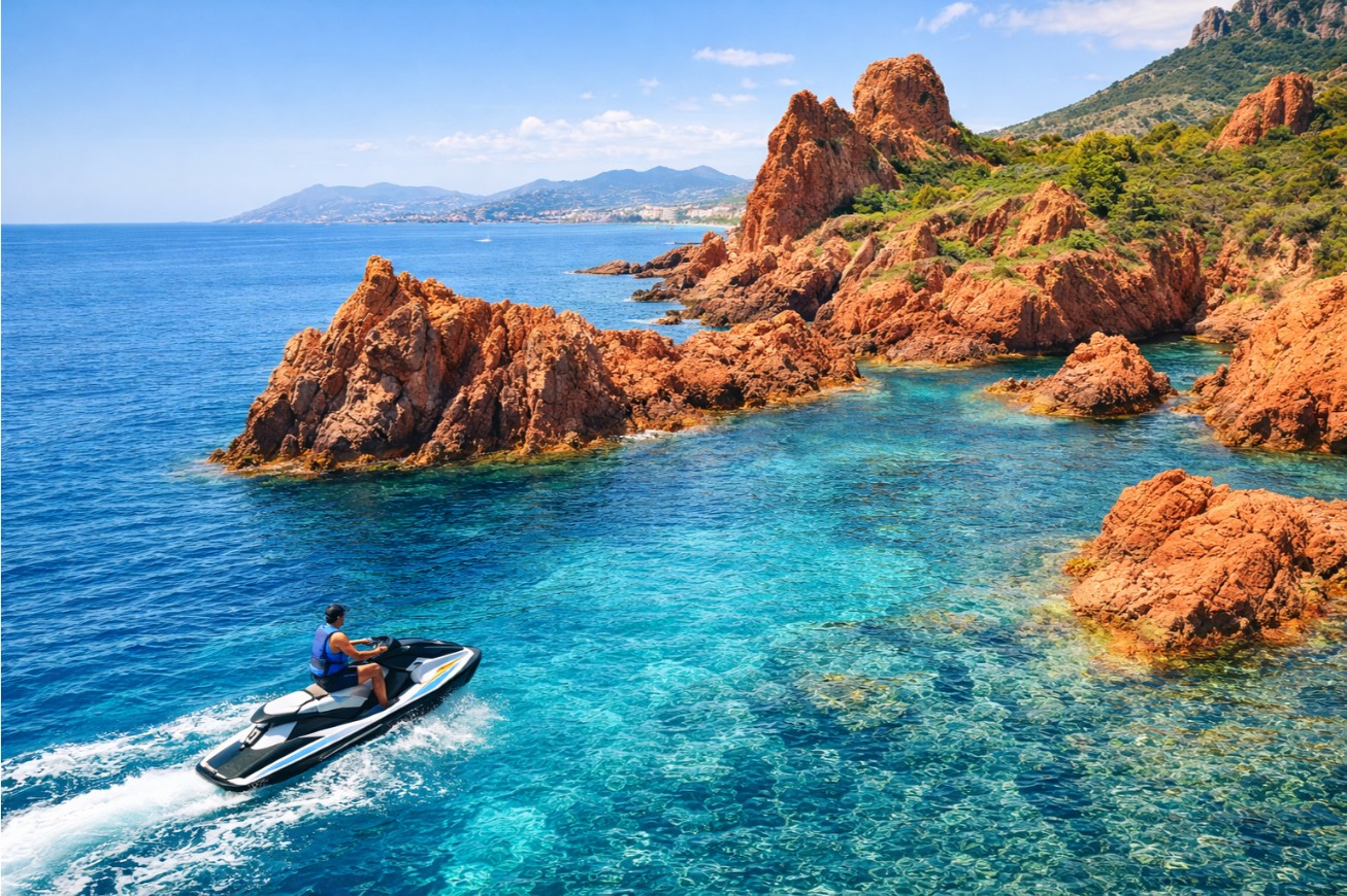 Ressentez l’adrénaline le long des côtes sauvages de l’Estérel, un cadre unique pour une randonnée en Jet Ski.
